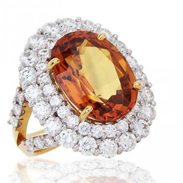 Elegant 10.71 carat weight Yellow sapphire ring with round brilliant diamonds in 22K yellow gold.