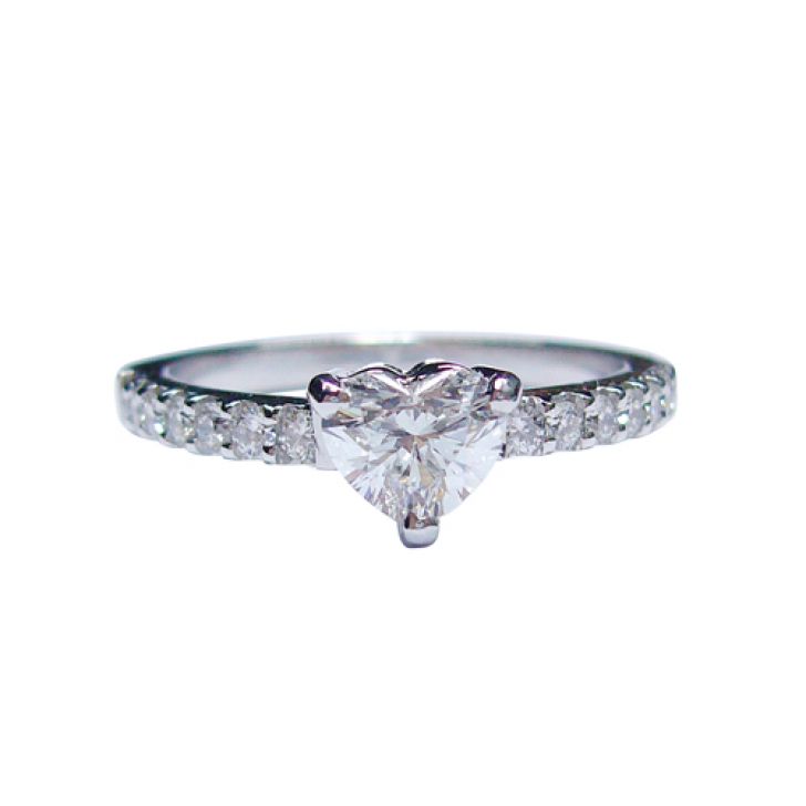 A 18K white gold ring with 0.51ct heart-shaped center diamond.