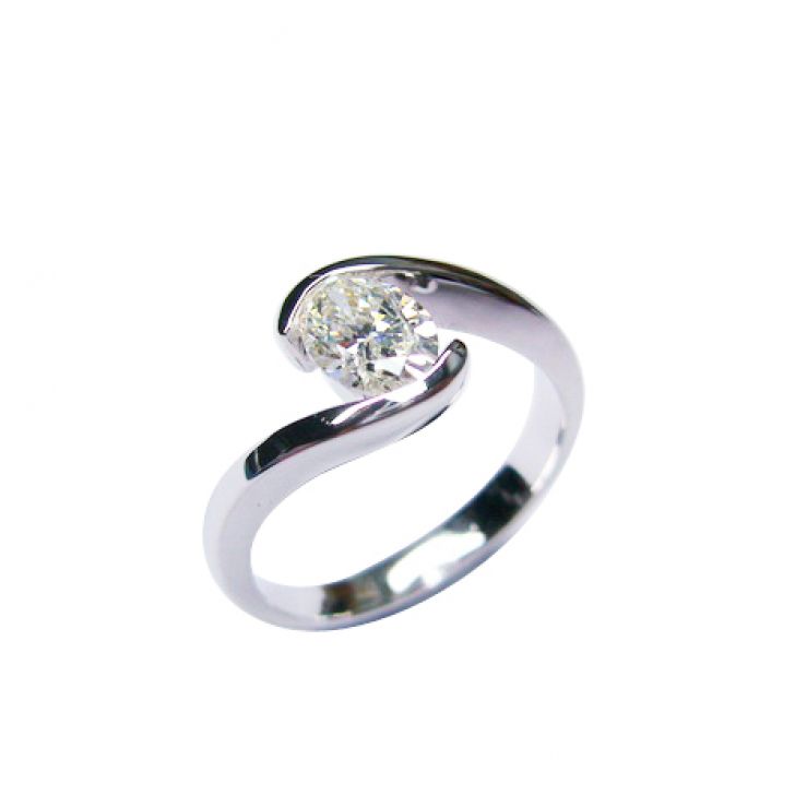An 0.73ct. oval-shaped diamond ring in 18K white gold.