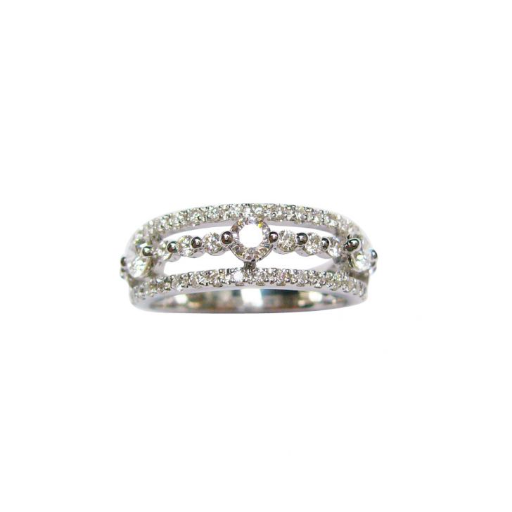 Three line ring in 18K white gold with round brilliant diamonds.