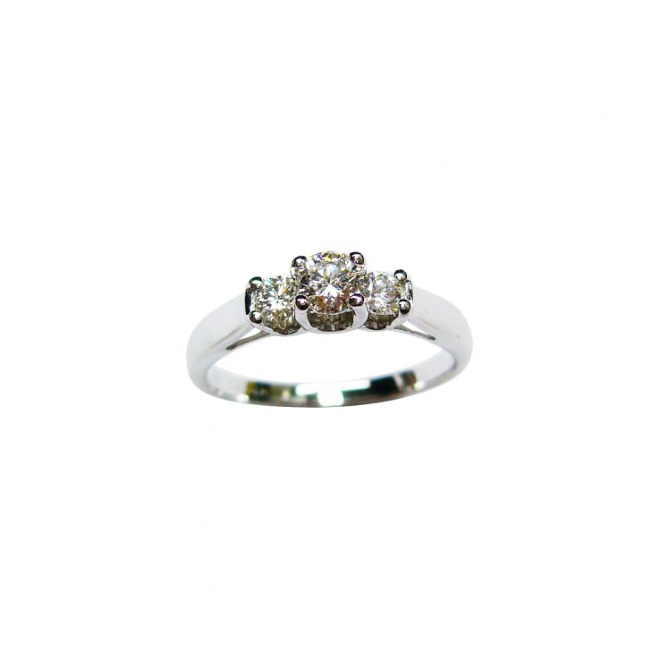 Engagement ring in 18K white gold with 0.22ct center round brilliant diamond.