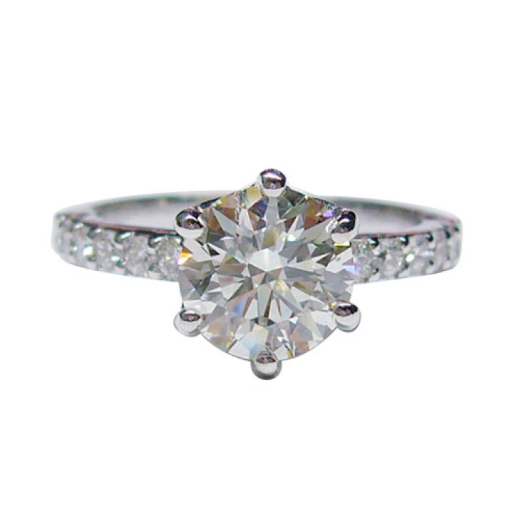 An engagement ring in 18K white gold. Round brilliant enter diamond carat weight 1.oo.