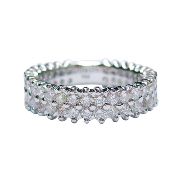 A Stunning double rows round brilliant diamond eternity band in 18K white gold.