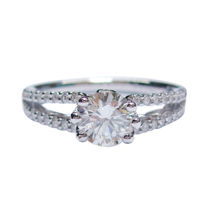 An engagement ring with 0.70ct center diamond in 18K white gold.