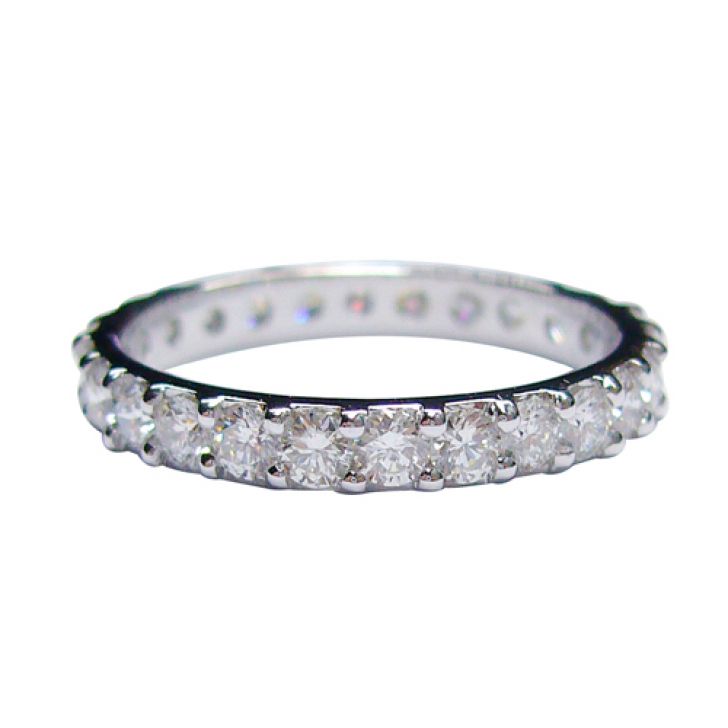 An eternity wedding band with total 0.95ct. round brilliant diamonds in 18K white gold.