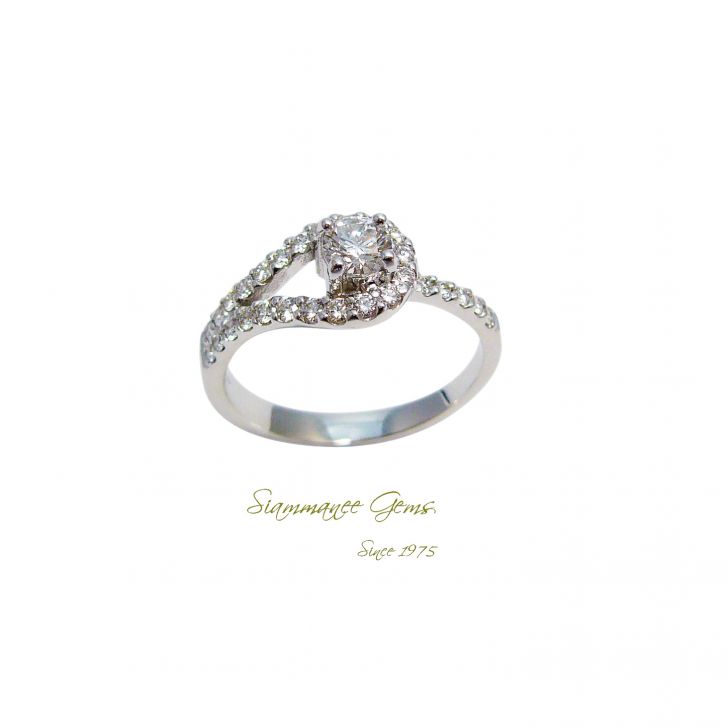 A diamond ring with 0.25ct center stone and total 0.31ct side stones in 18K white gold.