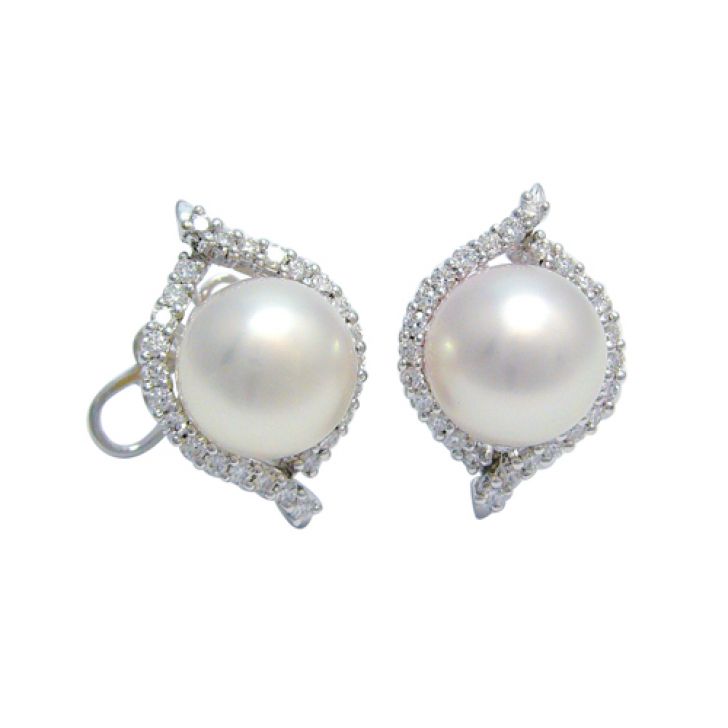 A South Sea pearl earrings with round brilliant diamond in 18K white gold.